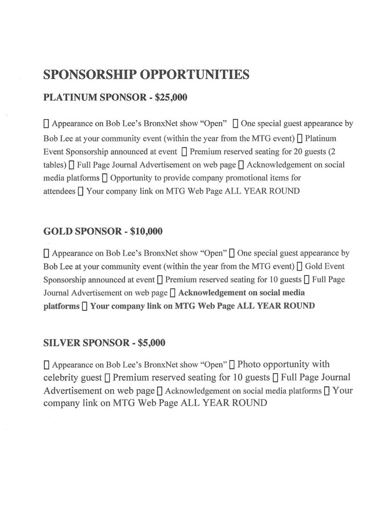 Please contact, Bob Lee at (718) 541-5250 or BobLeeWbls@Gmail.Com for additional information,
